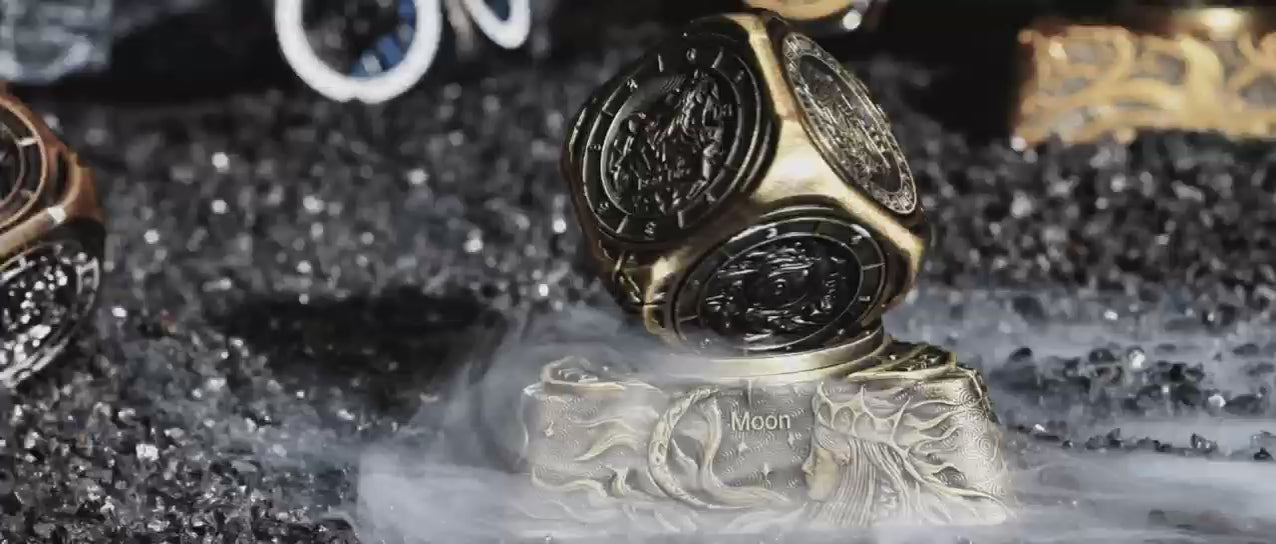 The D6 Dice Spinner version 2.0 has been meticulously optimized to perfectly fit the curve of your hand. All eight corners are rounded, and the edges are finely polished for a more comfortable grip. Place the D10 and D% dice on the same side, with two arrows clearly indicating the reading. We've also designed a unique "Spinning Throne" base for the D6 spinning dice. Inspired by three Norse gods—Odin, Freya, and Loki—it brings a whole new experience to interactive dice games.